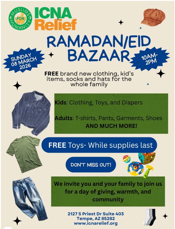 🌙ICNA Relief is pleased to host a Free Shopping Spree for our incredible community! Let’s get ready for upcoming Eid celebrations with dignity, respect, and a whole lot of love.