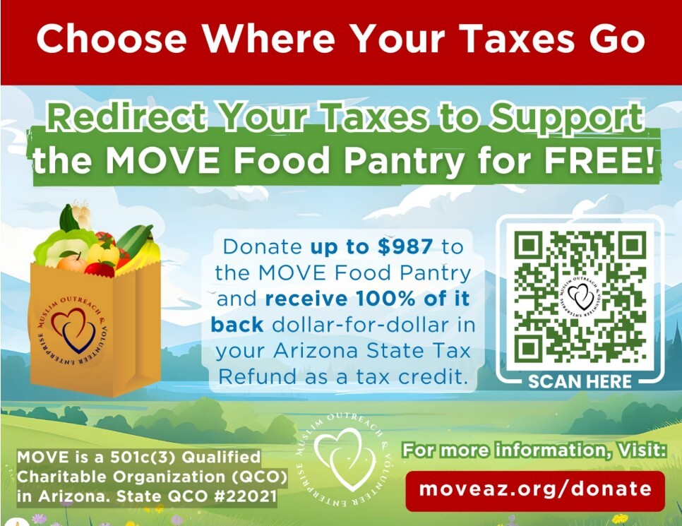 Once you file your taxes, 100% of your tax credit donation will be refunded to you. This money supports the MOVE Food Pantry and youth activities. Visit www.moveaz.org/donate